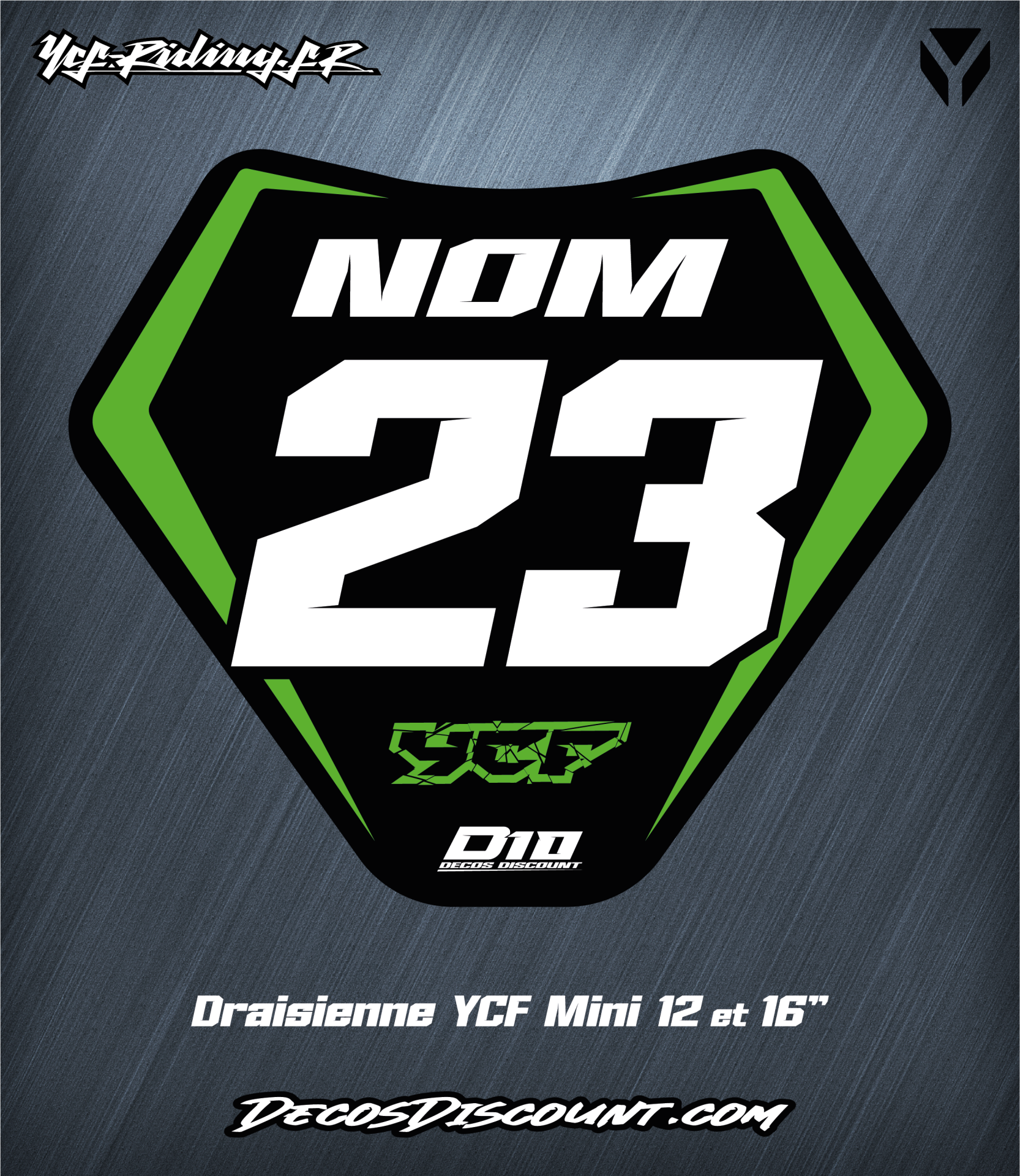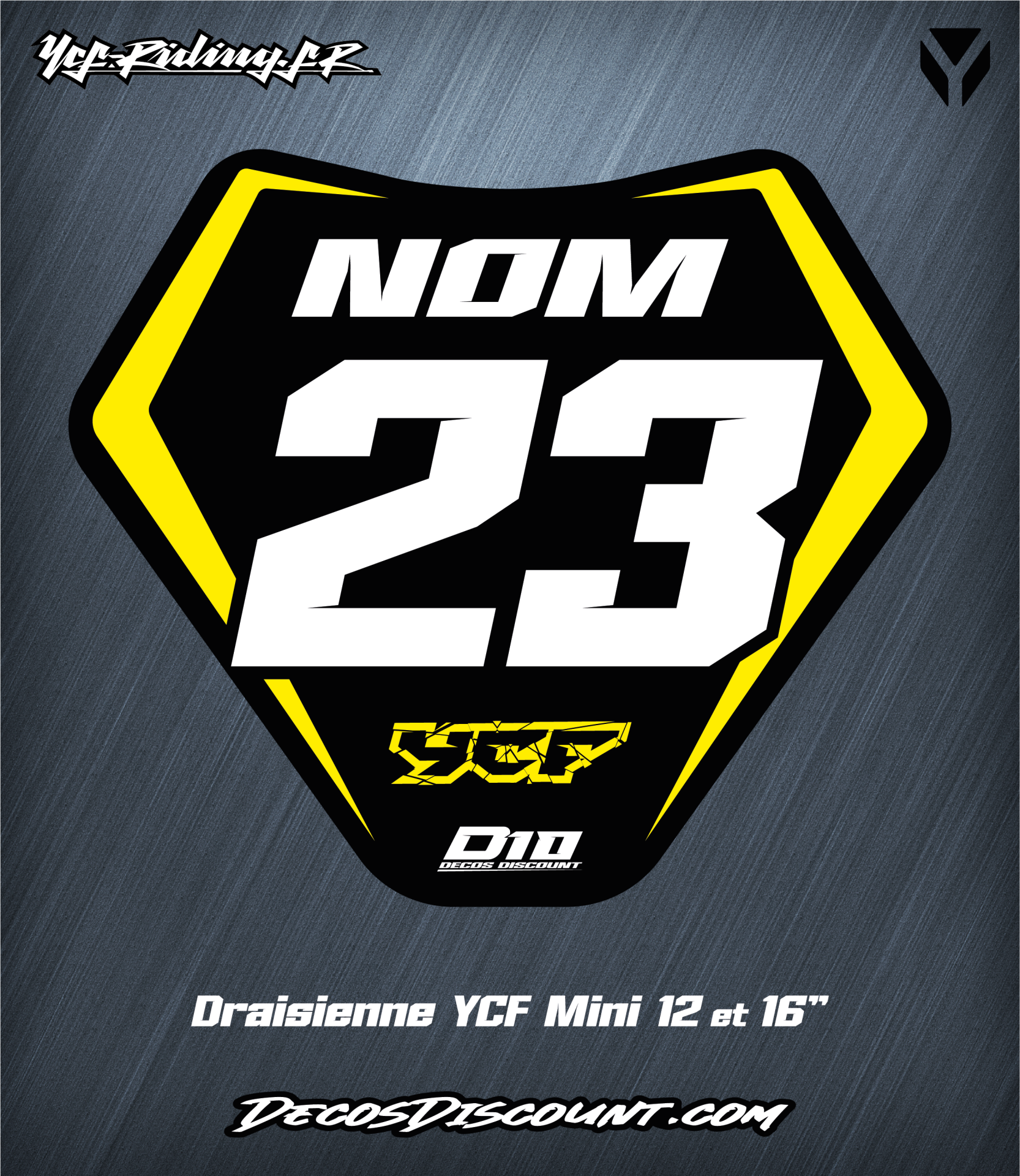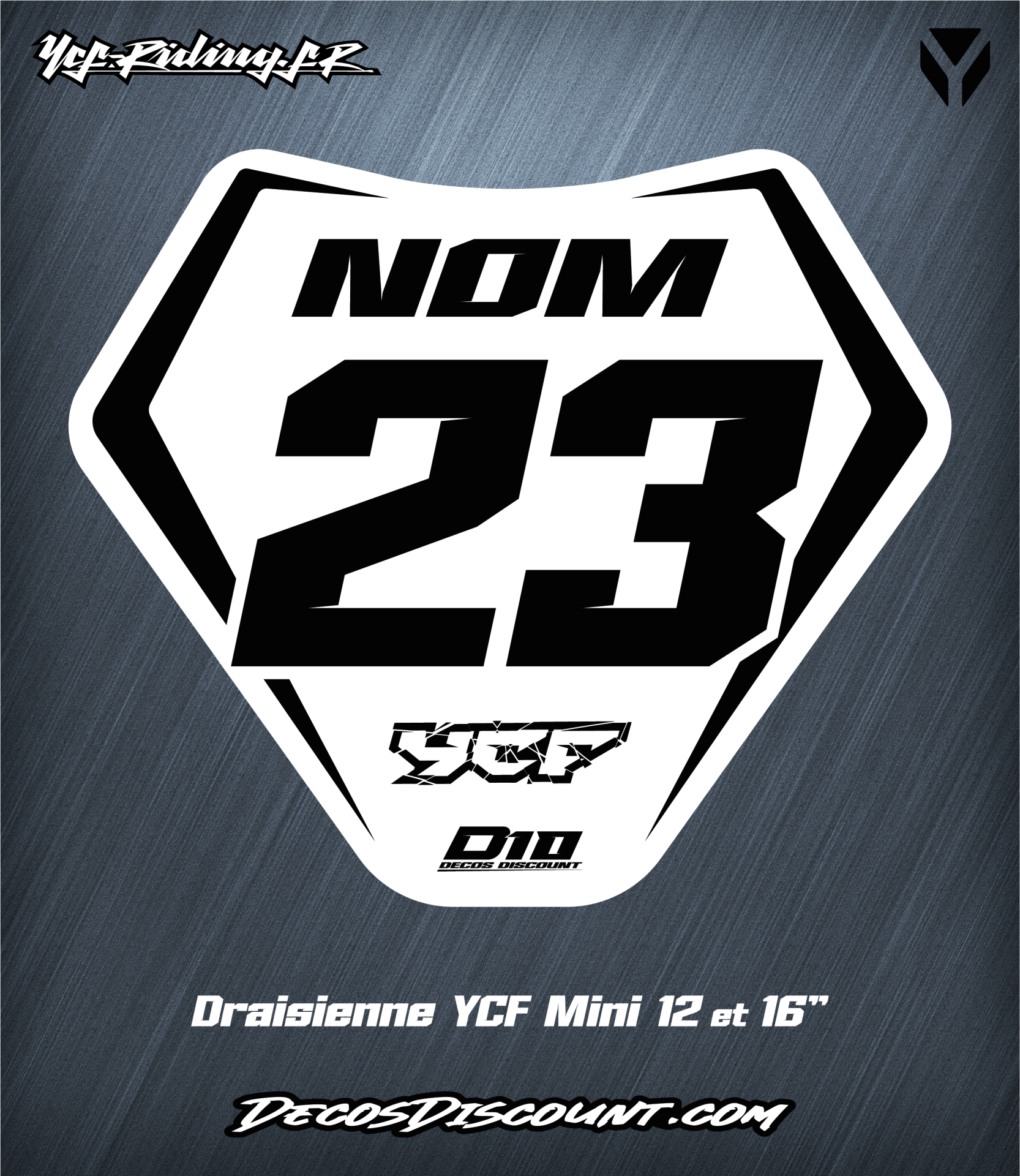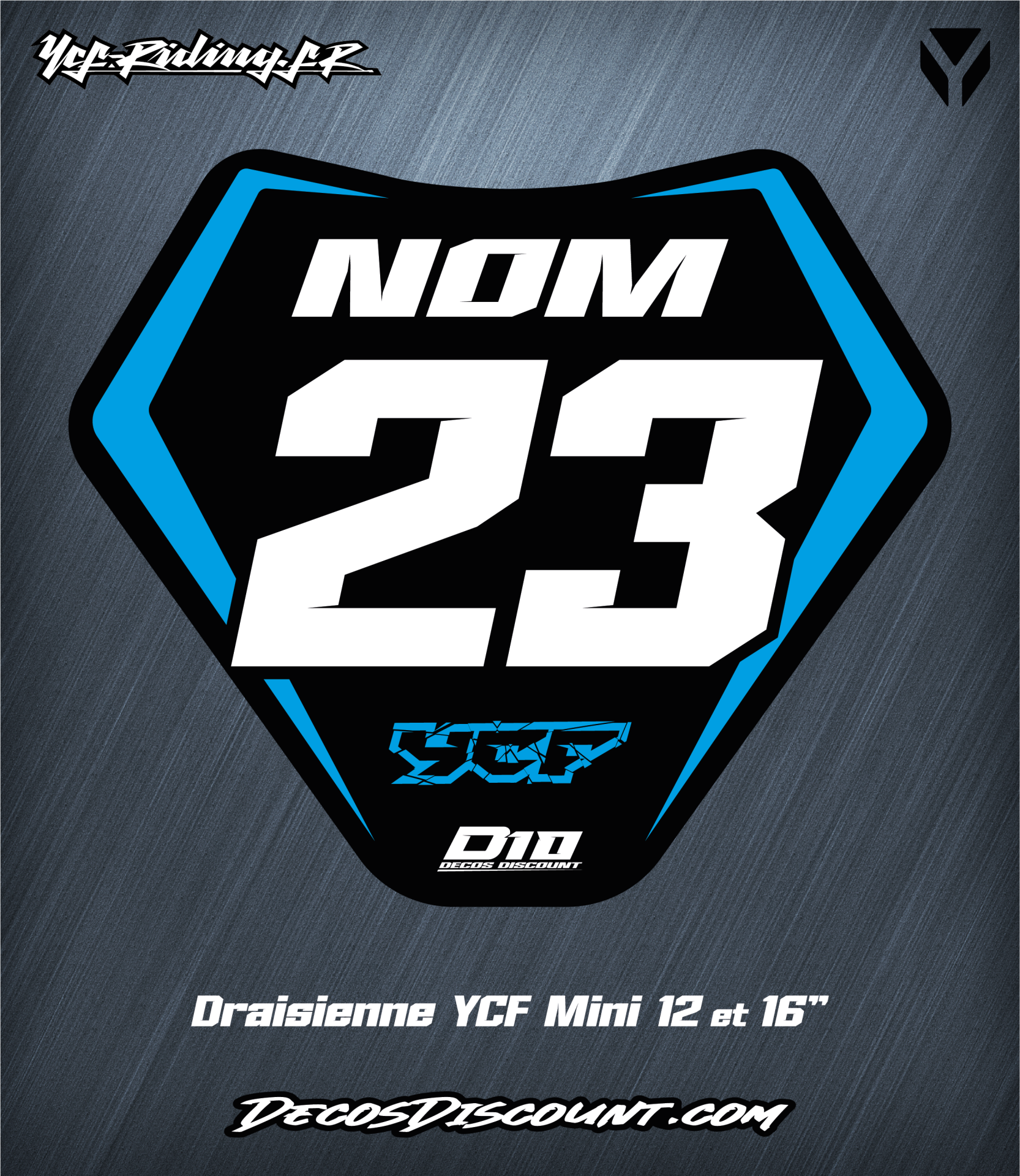 Stickers pour plaque avant YCF Mini 12 ou 16" - Personnalisable Nom et numéro
